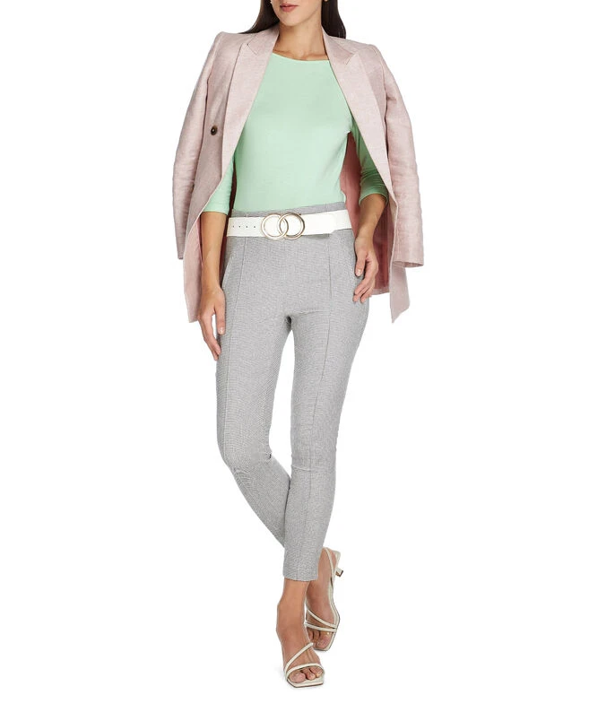 Pantalón Pertegaz de corte recto en tejido de punto con microdiseño, pretina elástica y pespuntes a tono.