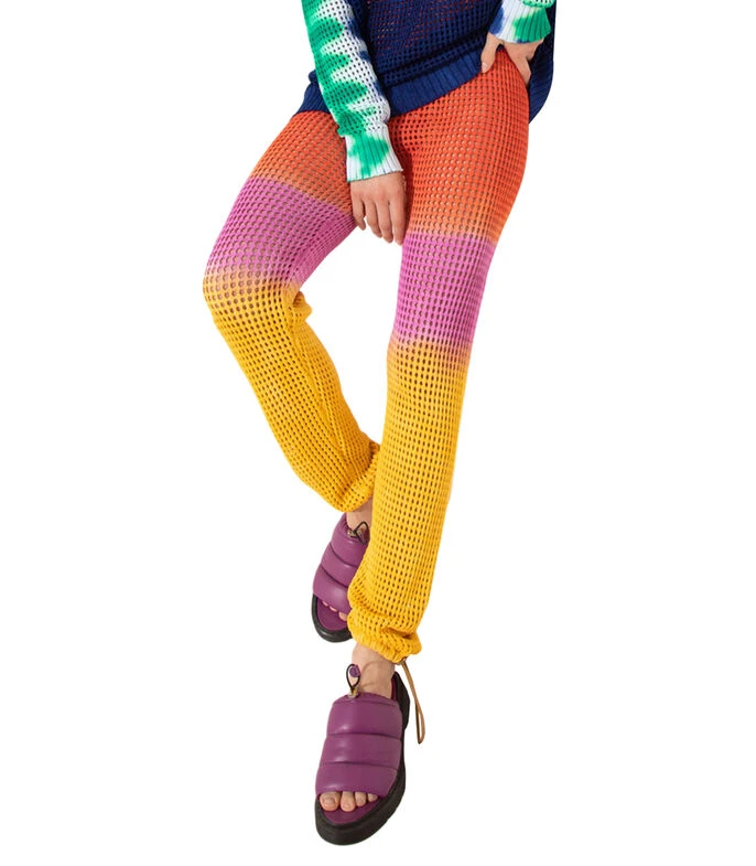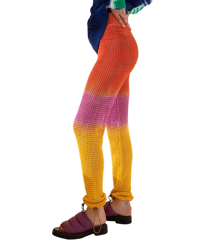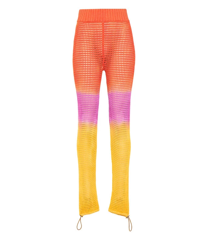 Pantalón Jazmin Chebar Line de corte recto en tejido de punto con diseño calado, pretina elástica y cintas de ajuste en parte inferior.