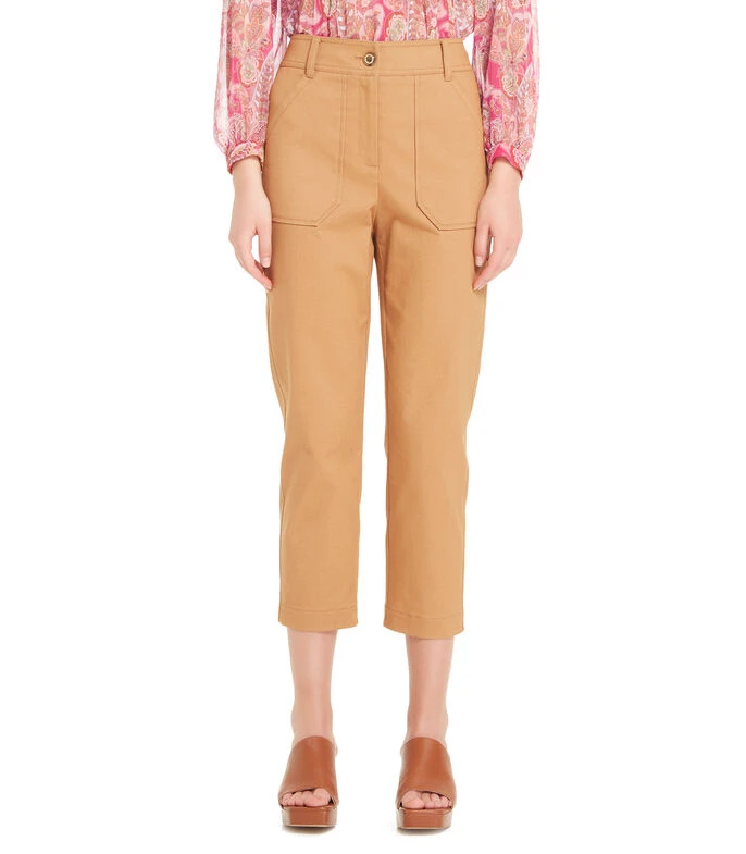 Pantalón Julio de corte Recto en tejido de punto; Pantalón recto tiro medio. Pretina con trabas y botón. Bolsillos diagonales de parche. Largo del interior de la pierna: 62 cm. Sarga de algodón esmerilado.