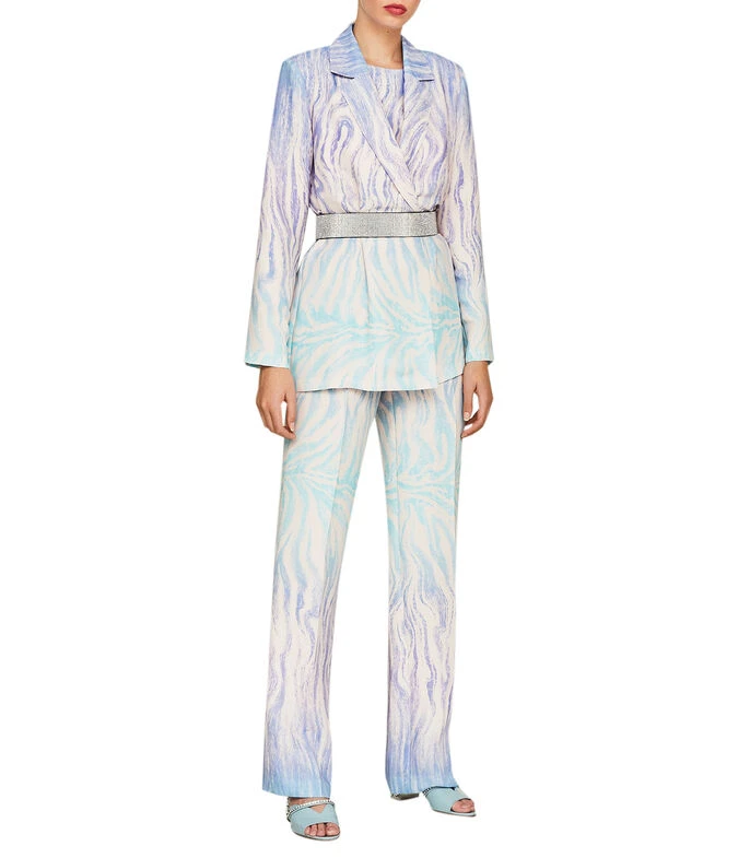 Pantalón Mirto de corte regular en tejido de punto con diseño en mosaico, pretina elástica y pespuntes a tono.