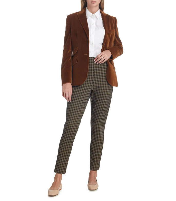 Pantalón Pertegaz de corte skinny en tejido de punto, diseño de cuadros y pretina elástica.