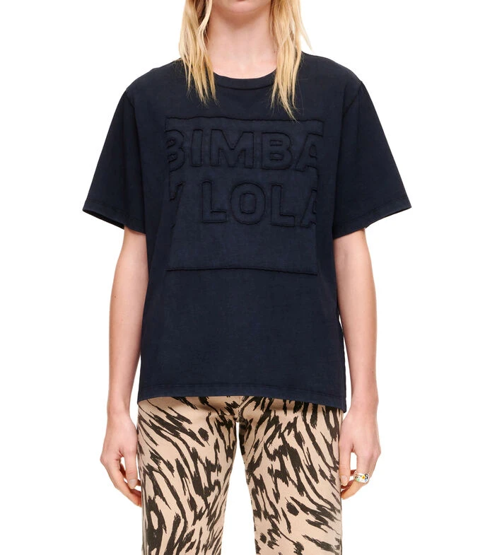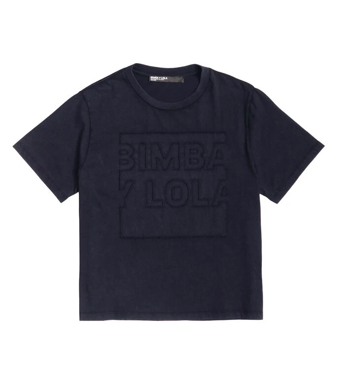 Playera Bimba y Lola de corte regular en tejido de punto, cuello redondo, manga corta y estampado a tono con el nombre de la marca.