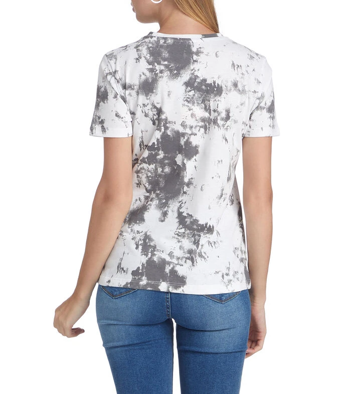 Playera Catamaran de corte recto en tejido de punto, diseño tie dye con figura estampada alusiva a la sirenita, cuello redondo, y manga corta.