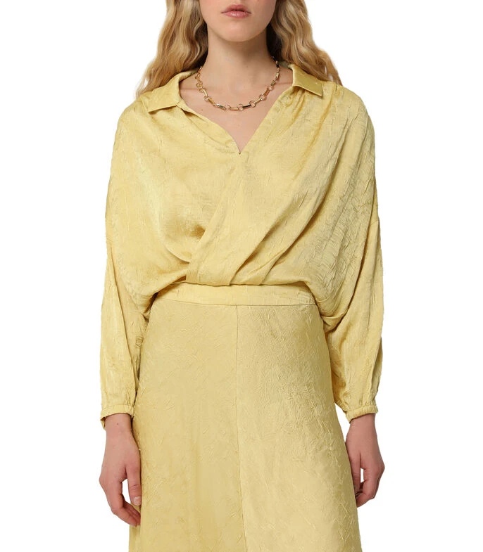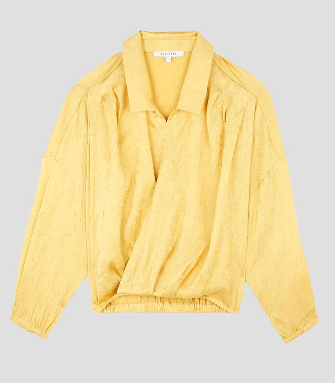 Camisa Scalpers de corte regular en tejido de punto, cuello camisero, manga larga y elástico en parte inferior y puños. Una camisa diferente gracias a su detalle cruzado y textura corrugada, perfecta para un día informal.