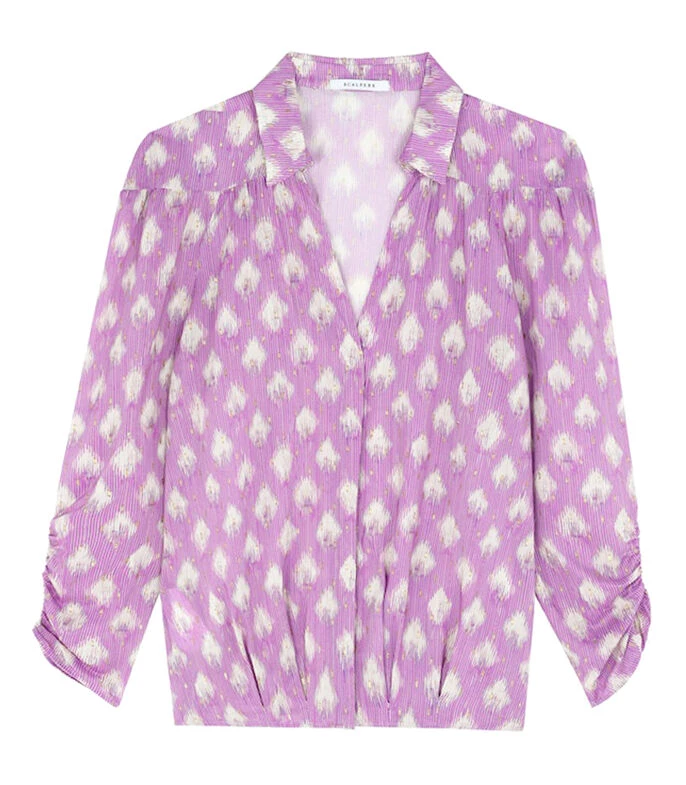 Camisa Scalpers de corte regular en tejido de punto con diseño de manchas en mosaico, cuello italiano, manga 7/8 y botonadura a tono.