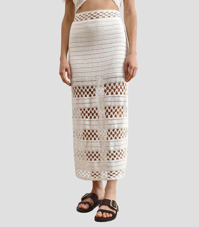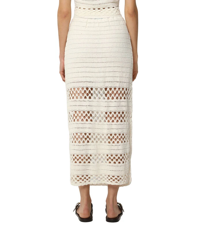 Falda larga Scalpers de corte recto en tejido de punto con detalles calados y tipo crochet. Luce un look divertido y fresco para cada ocasión.