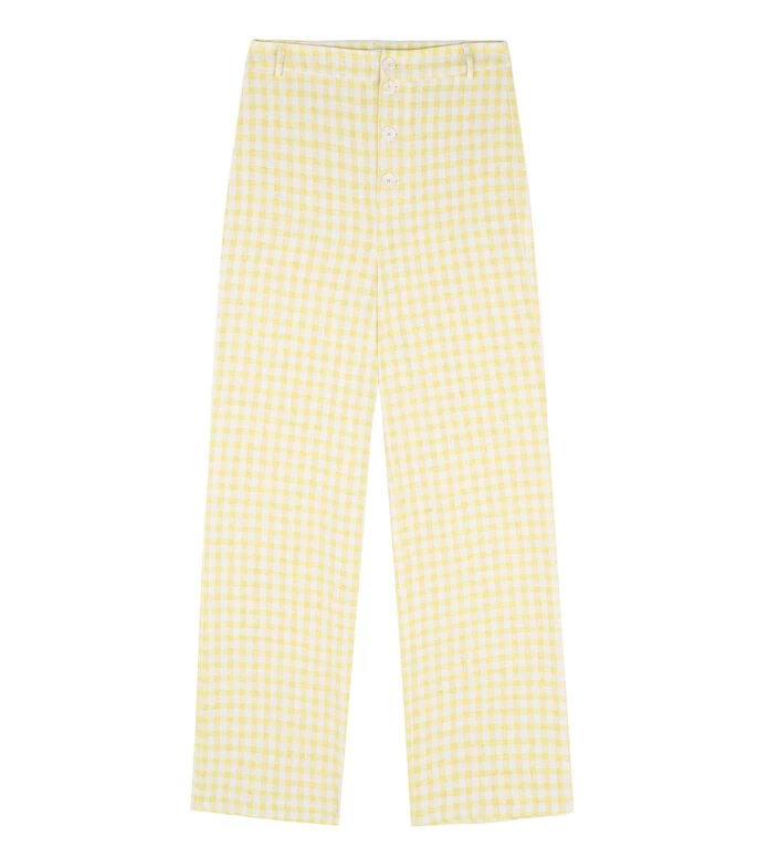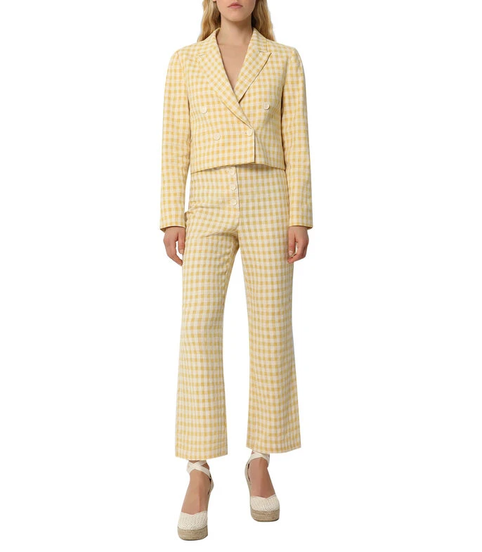 Pantalón Scalpers de corte recto en tejido de punto con cuadros, trabillas para cinturón y cierre de botones al frente.