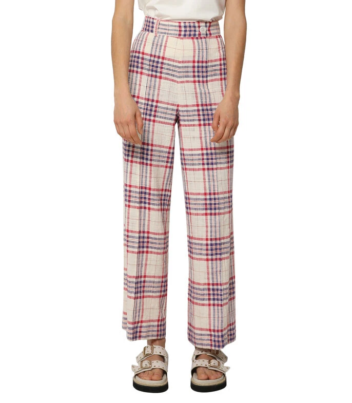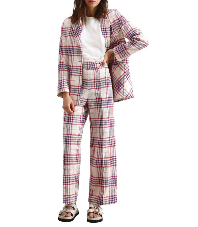 Pantalón Scalpers de corte regular en tejido de punto con diseño de cuadros y rayas.