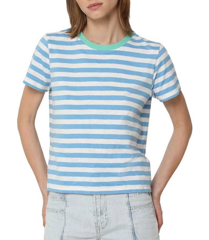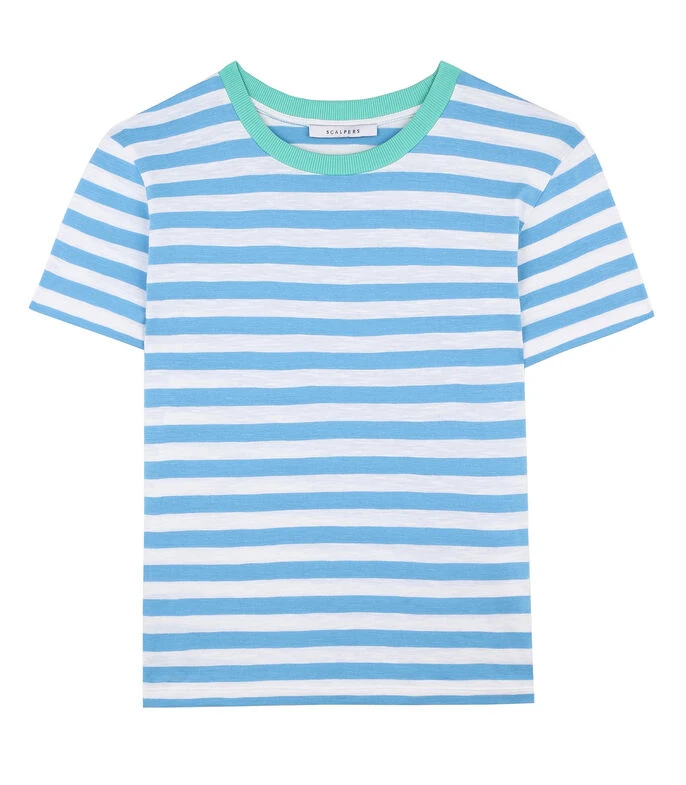 Playera Scalpers de corte regular en tejido de punto con rayas, cuello redondo y manga corta.