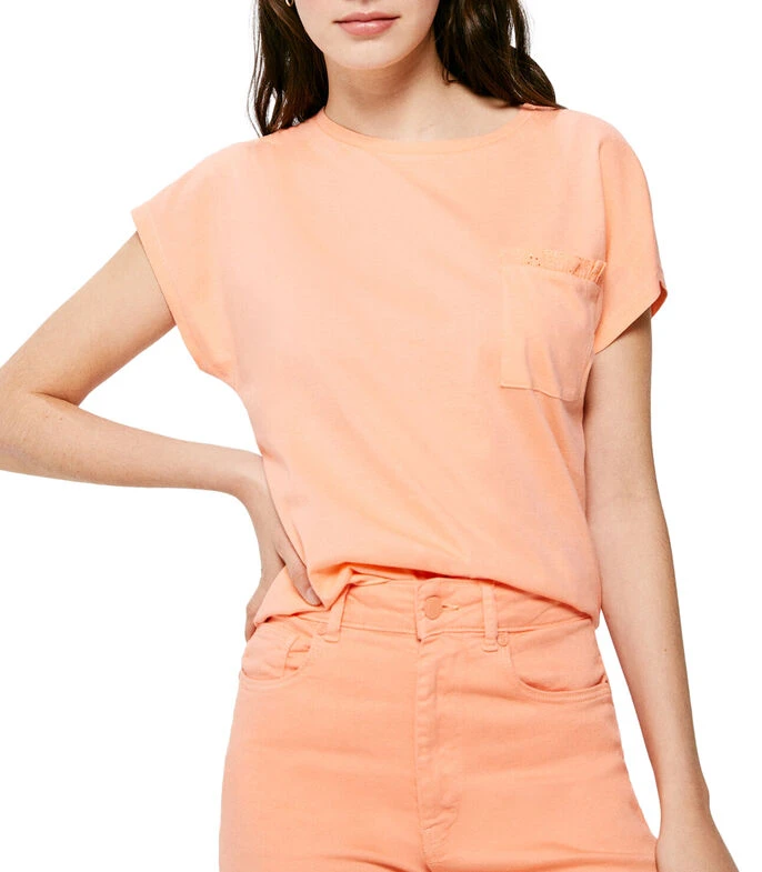 Playera Springfield de corte regular en tejido de punto jaspeado, cuello redondo, manga corta caída y un bolsillo al pecho con detalle de bordado suizo.