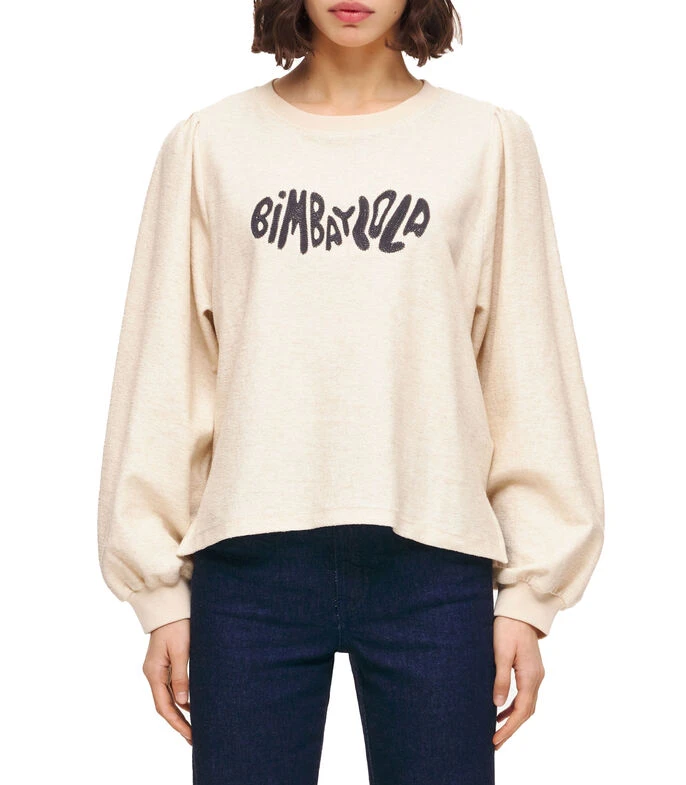 Sudadera Bimba y Lola de corte regular en tejido de punto, cuello redondo, manga larga abulonada, estampado en pecho y bordes acanalados.