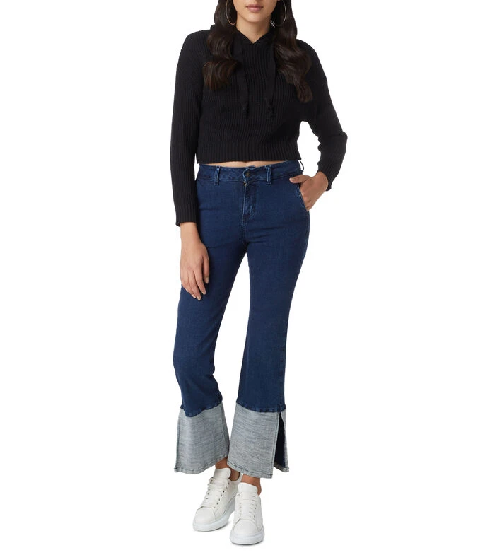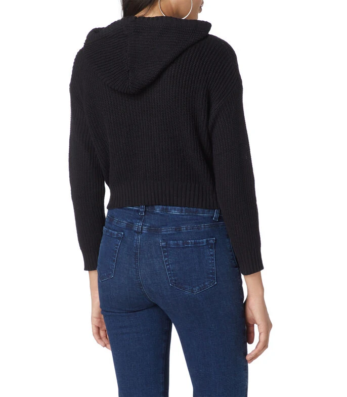 Sudadera crop top Catamaran de corte regular en tejido de punto con acabado canalé, capucha en cuello y cordones ajustables al pecho.