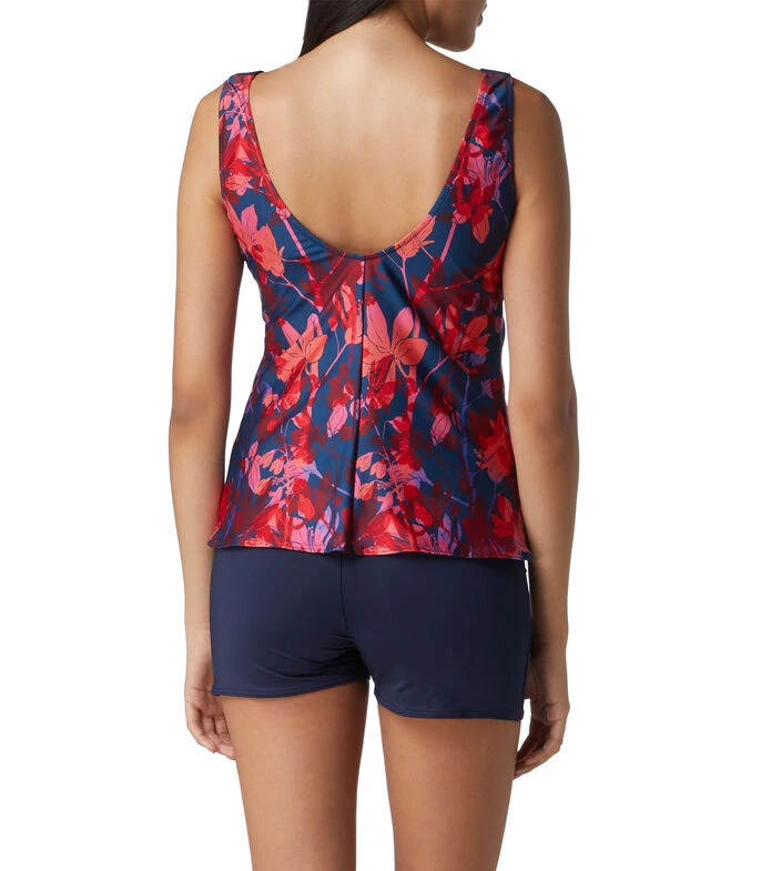 Tankini Barocco en tejido de punto con estampado floral y copa suave integrada. Short elástico a contraste.