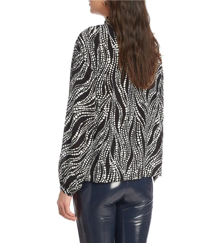 Camisa The Kooples de corte Regular en tejido de punto con estampado de lunares, lazo ajustable al pecho y puño simple.
