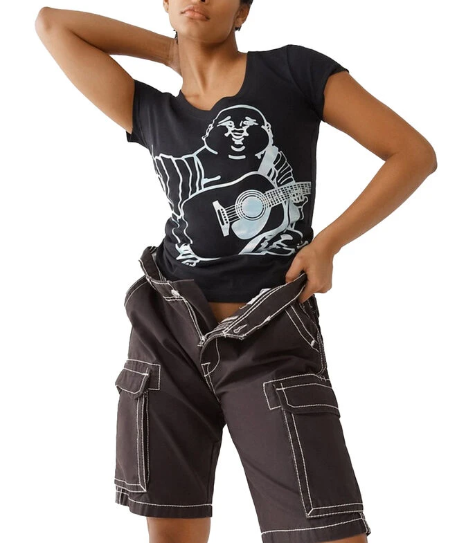 Playera True Religion de corte recto en tejido de punto con estampado al frente, cuello redondo y manga corta.