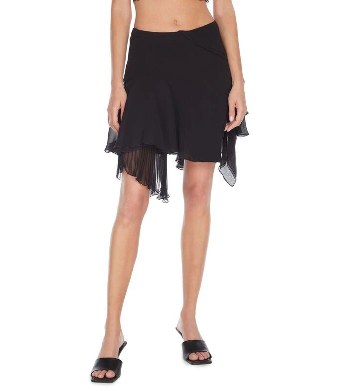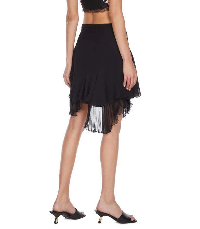 Falda Versace corta de corte regular en tejido de punto con diseño liso, cremallera al costado y holanes decorativos a tono.