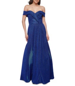 Vestido largo Massima de corte «A» en tejido plano, diseño tipo glitter, abertura en hombros y cierre en espalda.