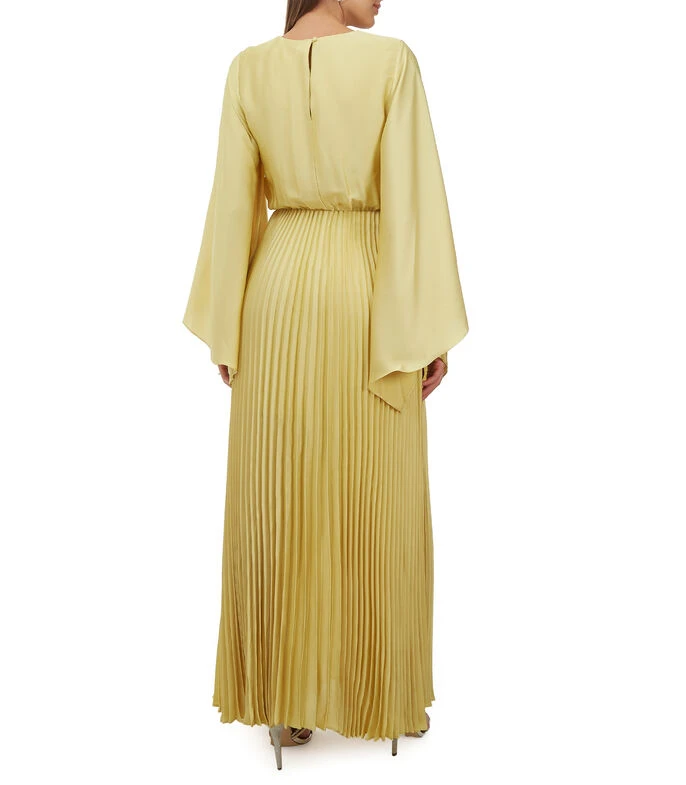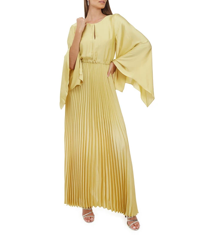 Vestido BCBG Maxazria largo de corte recto en tejido plano con mangas amplias y falda plisada.
