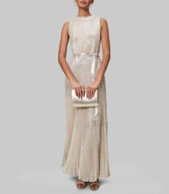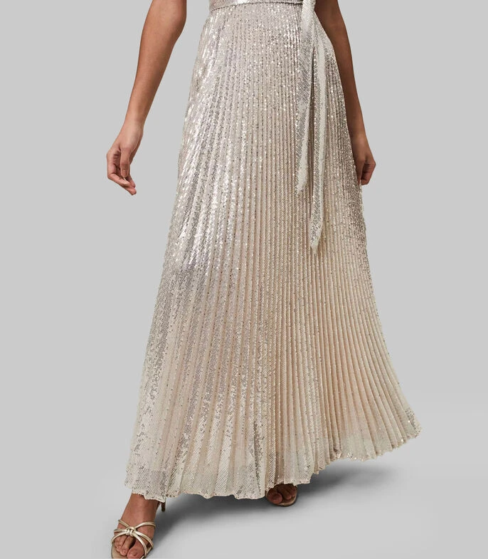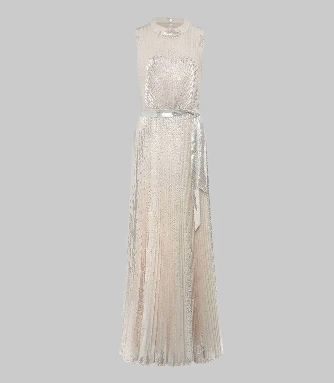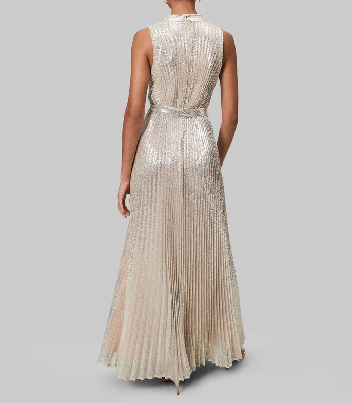 Vestido de fiesta maxi Phase Eight Simara de corte recto en tejido de punto con diseño plisado, aplicación de lentejuela, lazo de amarre en cintura y cierre de cremallera en espalda. Sabemos que este es un vestido que seguirás buscando. Esta es una prenda llamativa, pero también se puede usar como vestido de dama de honor.