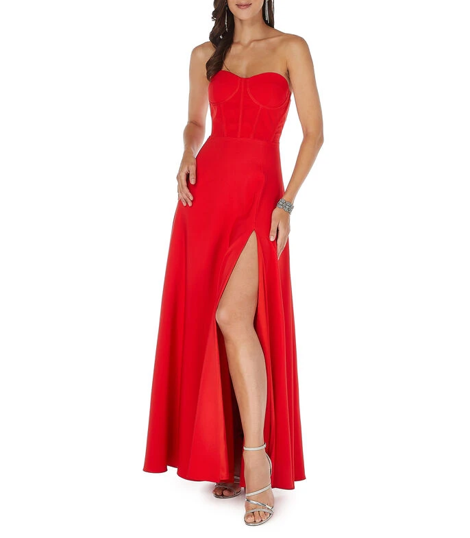 Vestido de fiesta Eva Brazzi Maxi de corte imperio en tejido de punto, escote corazón, tirantes delgados ajustables, sin mangas y medio cierre de cremallera en espalda.