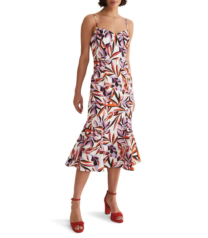 Vestido de fiesta Phase Eight Midi de corte regular en tejido de punto estampado, escote corazón y sin mangas; ¿Buscas un vestido para usar en tu próxima ocasión? No busques más. Diseñado con un vibrante estampado botánico, nuestro vestido presenta delicados tirantes de espagueti, un escote corazón y cae a una falda midi ajustada y acampanada. Nuestro vestido Sammie es perfecto para usar con tacones y un bolso de mano a juego para tus futuras confirmaciones de asistencia.