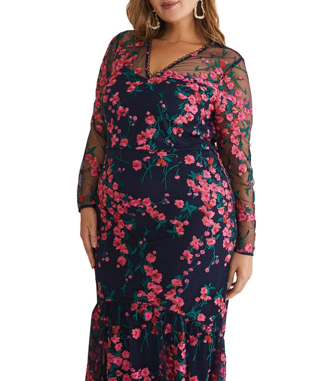 Vestido de noche maxi Phase Eight Trisha de corte ajustado en tejido de punto con elementos translúcidos, elegantes rosas bordadas y diseño liso en interior. Parte de la Colección 8, nuestra gama de estilos de noche premium. Este estilo es perfecto para sus futuros eventos. Llevamos el nuestro con joyas doradas y tacones negros.