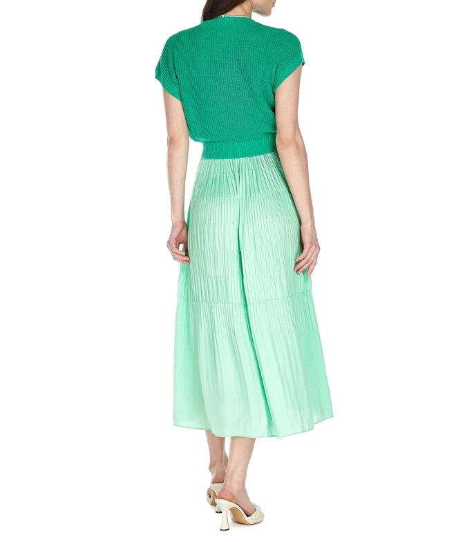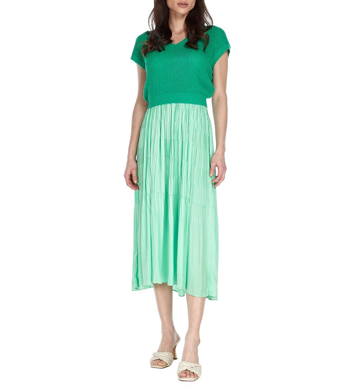 Vestido largo Chester & Peck de corte recto en tejido de punto con suéter, diseño plisado y tirantes delgados.