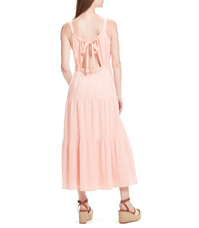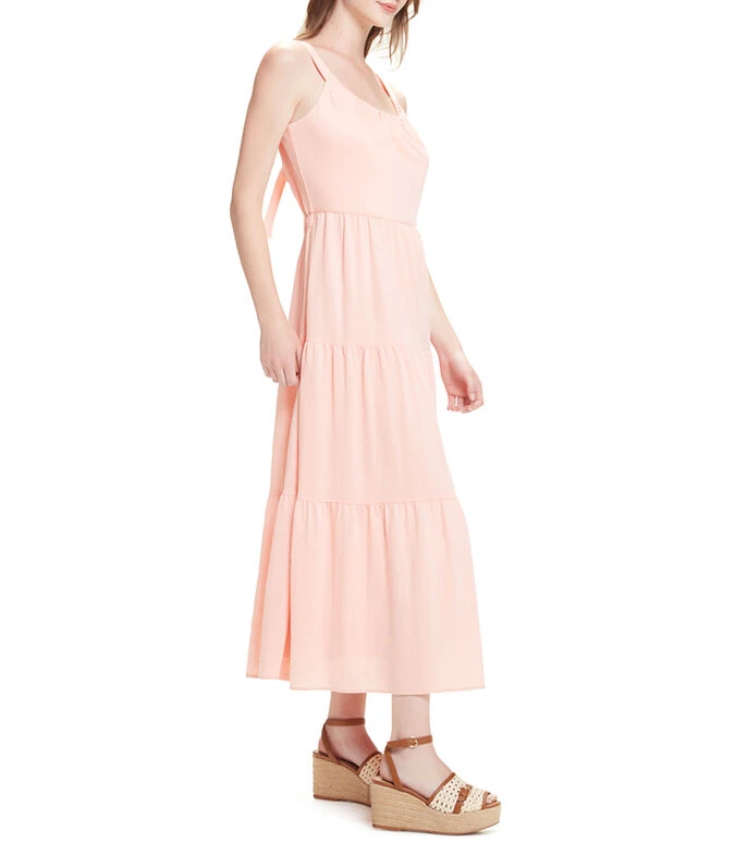 Vestido Julio Maxi de corte A escote redondo con tirantes. Corte en paneles con frunces. Abertura en espalda.