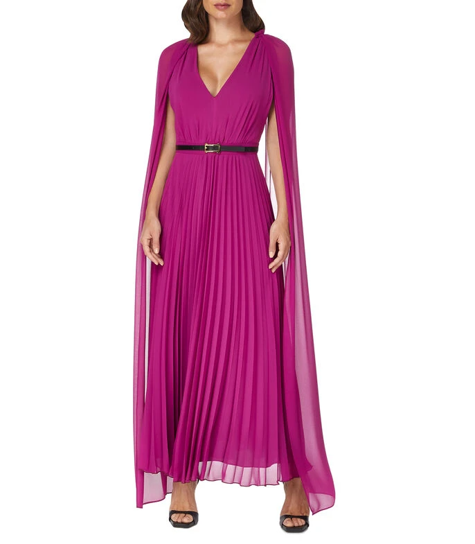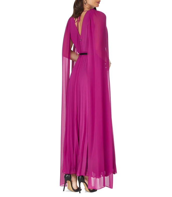 Vestido Julio Atelier maxi de corte recto en tejido de punto con detalle plisado, cierre oculto en la espalda, caída en las mangas y cinturón ajustable.