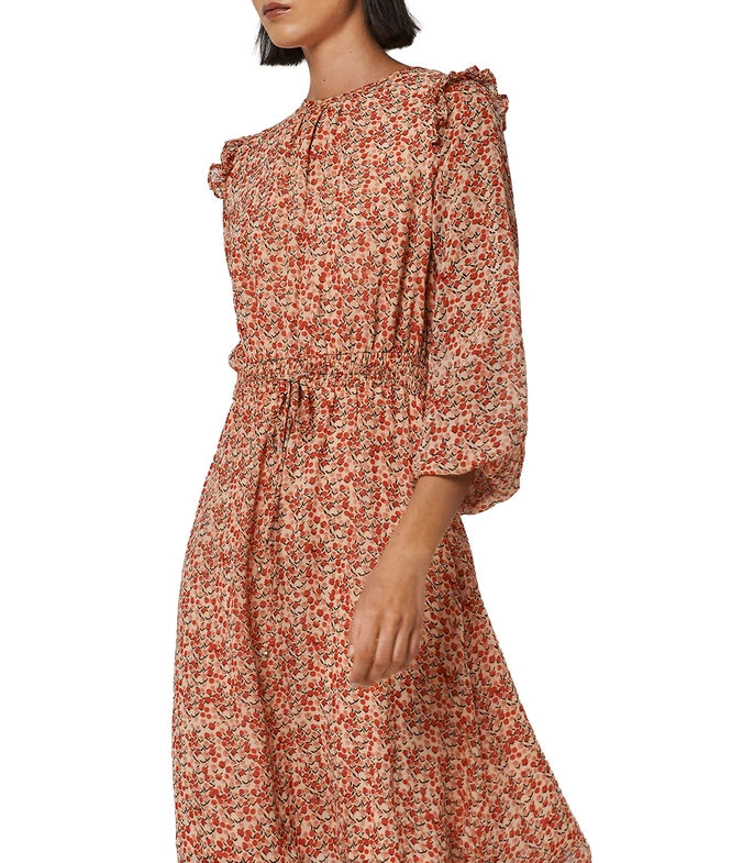 Vestido Roberto Verino midi de corte regular en tejido de punto con full print, cuello redondo, manga larga y pretina elástica en cintura.