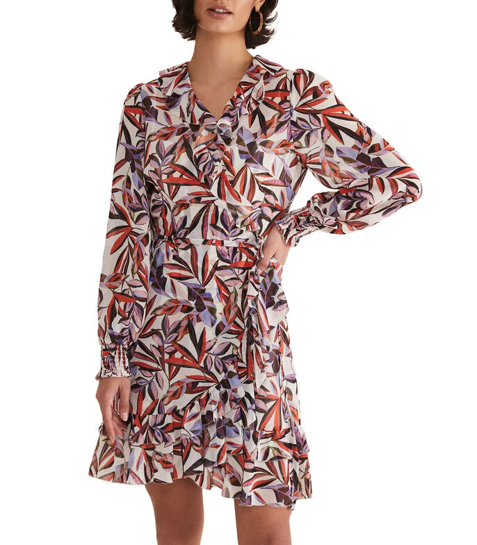 Vestido Phase Eight Midi de corte regular en tejido de punto con estampado abstracto, cuello V y manga larga; Conoce tu nuevo vestido favorito. Diseñado con un estampado botánico, nuestro vestido Melinda presenta detalles con volantes a lo largo de las mangas del corpiño envolvente y cae a una falda corta flotante. Lo hemos diseñado con tacones dorados para el look perfecto listo para el evento.