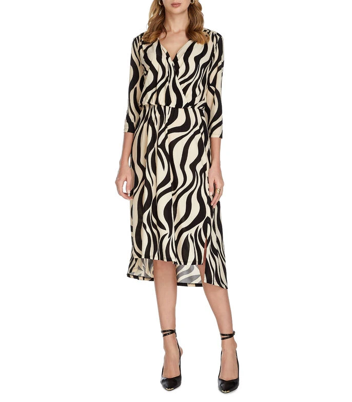 Vestido Pertegaz midi de corte Imperio en tejido de punto con animalprint, manga 7/8 y escote V prolongado.