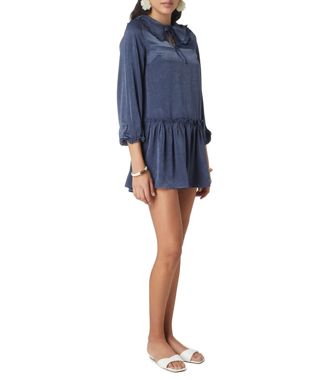 Vestido mini Catamaran de corte recto en tejido de punto con suave acabado, doblez en cuello redondo, manga larga y puño elástico.