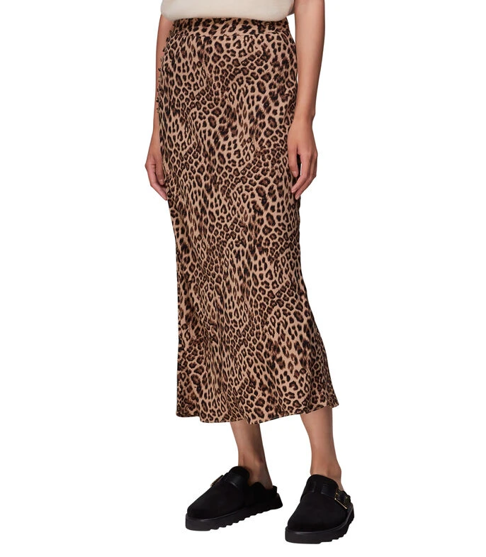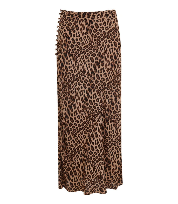 Falda Larga Whistles de corte recto en tejido de punto con diseño animalprint y botonadura a tono en lateral; Una prenda única que se volverá tu favorita en cualquier ocasión.