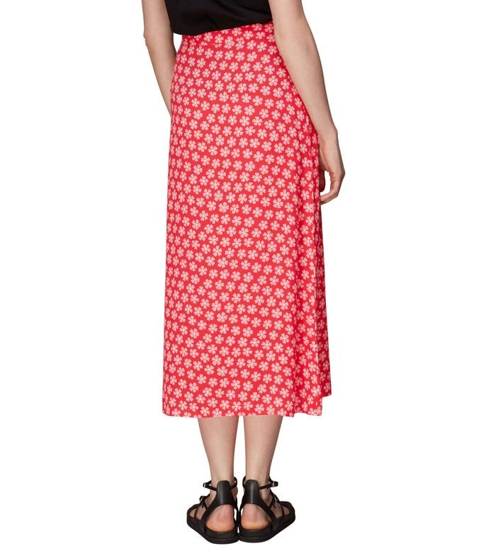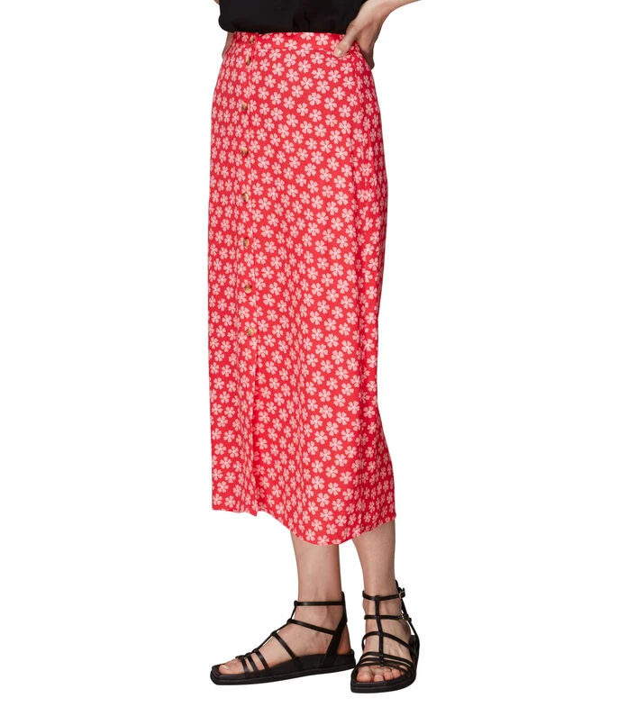 Falda larga Whistles de corte «A» en tejido de punto, estampado de flores y botonadura a contraste.