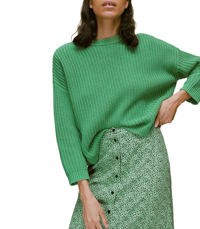 Falda Whistles Midi de corte recto en tejido de punto con estampado animalprint y botonadura a contraste al frente.