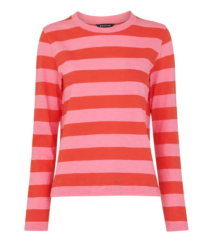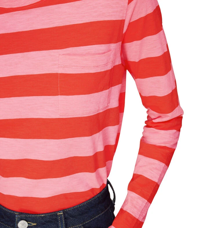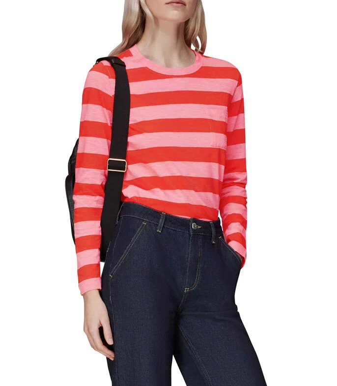Playera Whistles de corte regular en tejido de punto con print de rayas, cuello redondo, manga larga y bolsillo de parche.