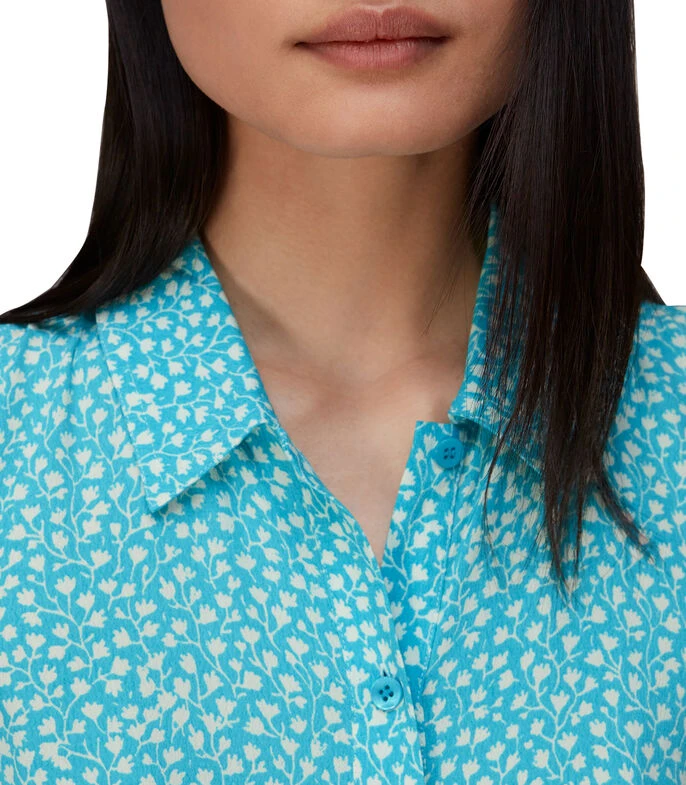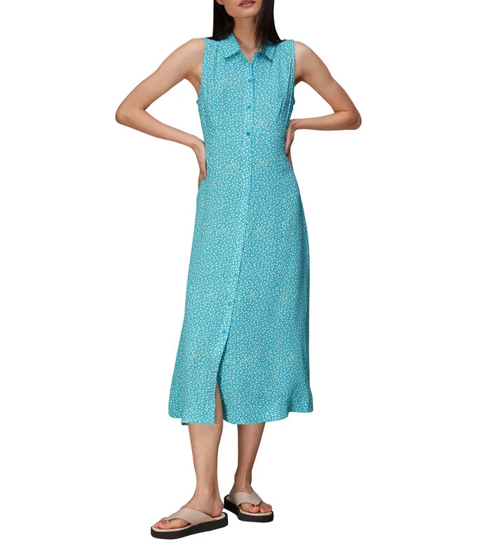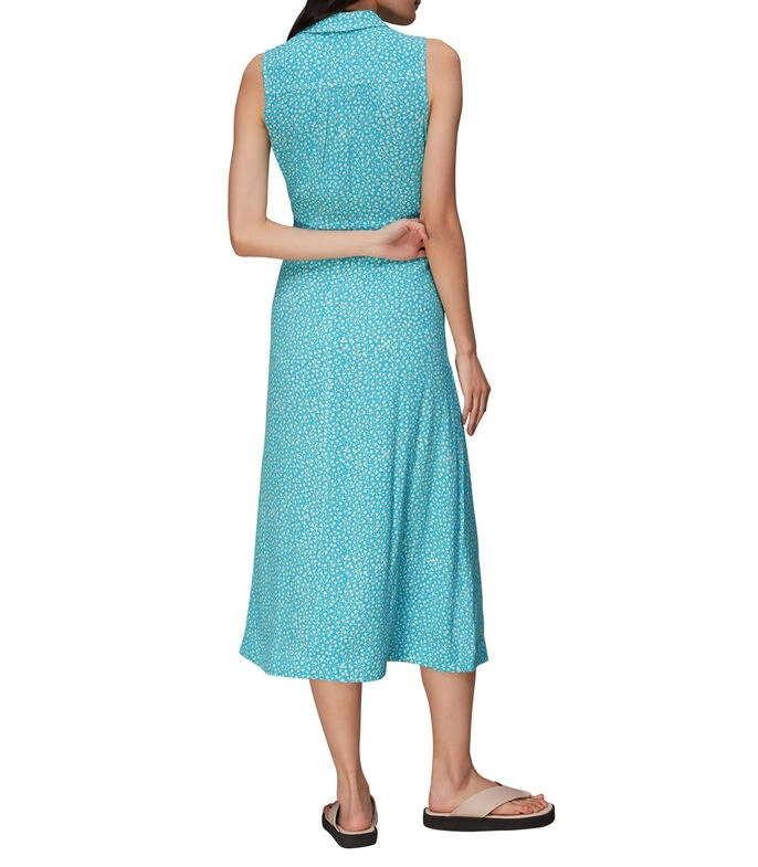 Vestido midi Whistles tipo camisero de corte recto en tejido de punto con estampado floral y cierre frontal de botones a tono.