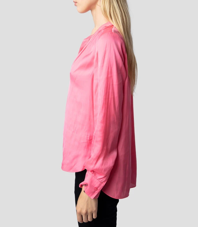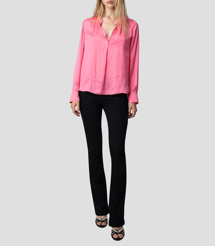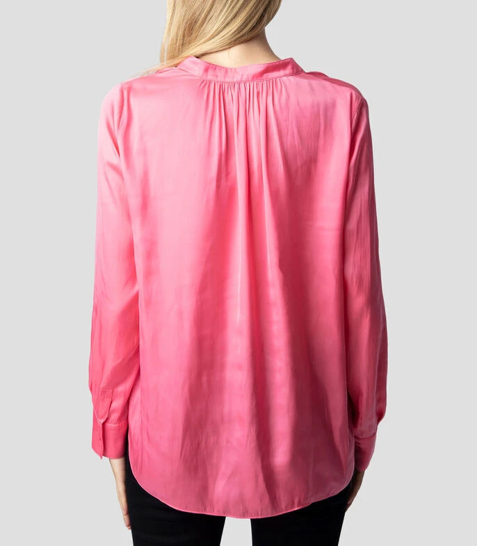 Camisa Zadig & Voltaire de corte regular en tejido de punto con acabado satinado, cuello V, manga larga y puño simple.