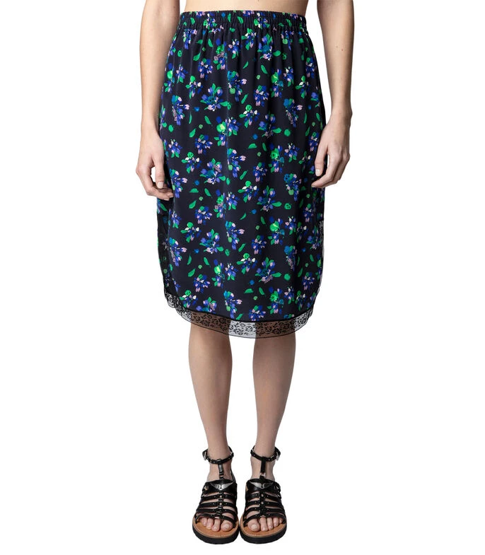 Falda Midi Zadig & Voltaire de corte recto en tejido de punto con estampado de flores, pretina elástica, detalle decorativo en bordes y abertura en costados.